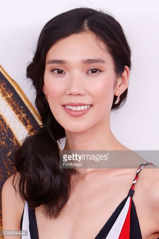 Tao Okamoto va sul semplice: un abito lungo con una scollatura profonda dalla fantasia a righe e dai colori allegri. Il suo make-up è moooolto naturale: punta tutto sulla pelle perfetta e luminosa. Lo sprint lo dà l’acconciatura, risultando sensuale e girly.