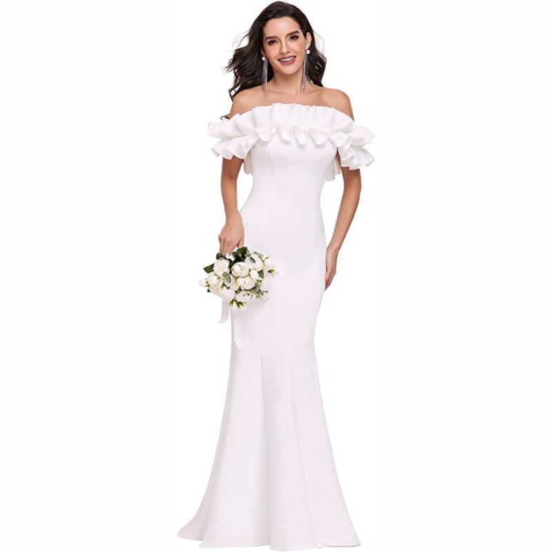 Ever-Pretty, Abiti da Sposa da Donna a Sirena Bodycon e con Volantes dalla Spalla, Prezzo 52,99€ su amazon.it