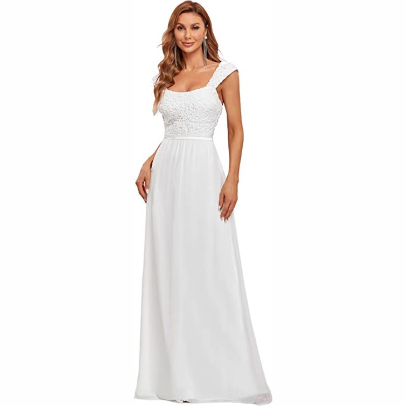 Ever-Pretty, Vestito da Cerimonia Donna 3/4 Manich Stile Impero Maxi Linea ad A Pizzo Chiffon, Prezzo 62,99€ su amazon.it