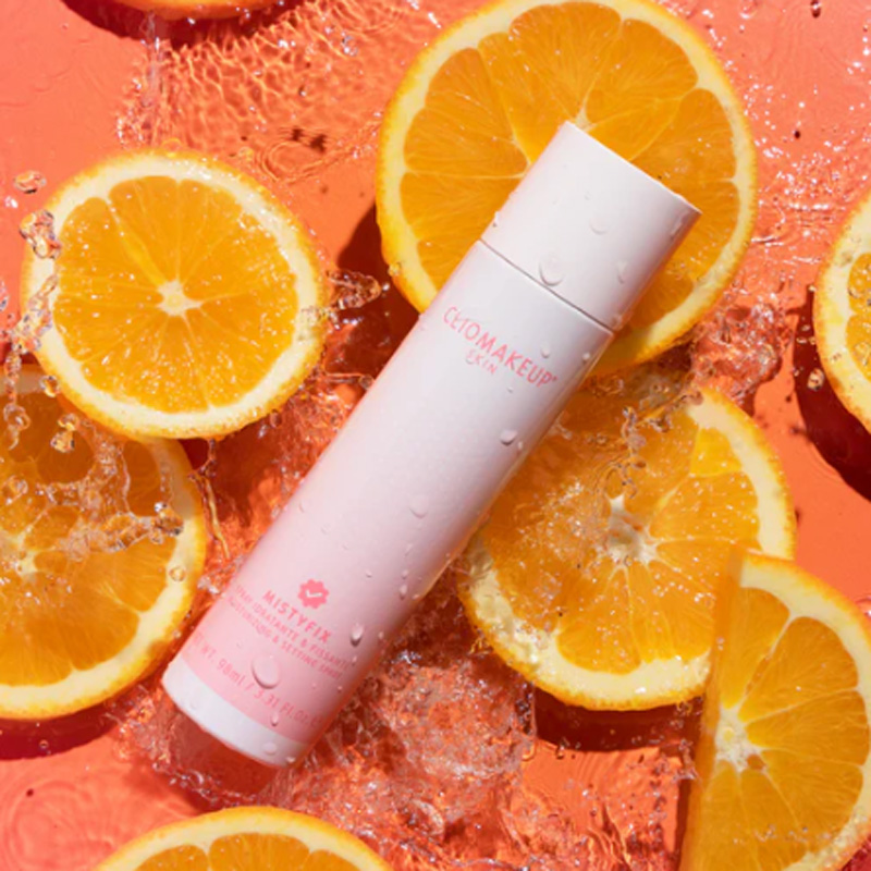 Acido ialuronico e acqua di arancia dolce son gli ingredienti cardine del setting spray idratante MistyFix Spray Makeup Idratante & Fissante ClioMakeUp.