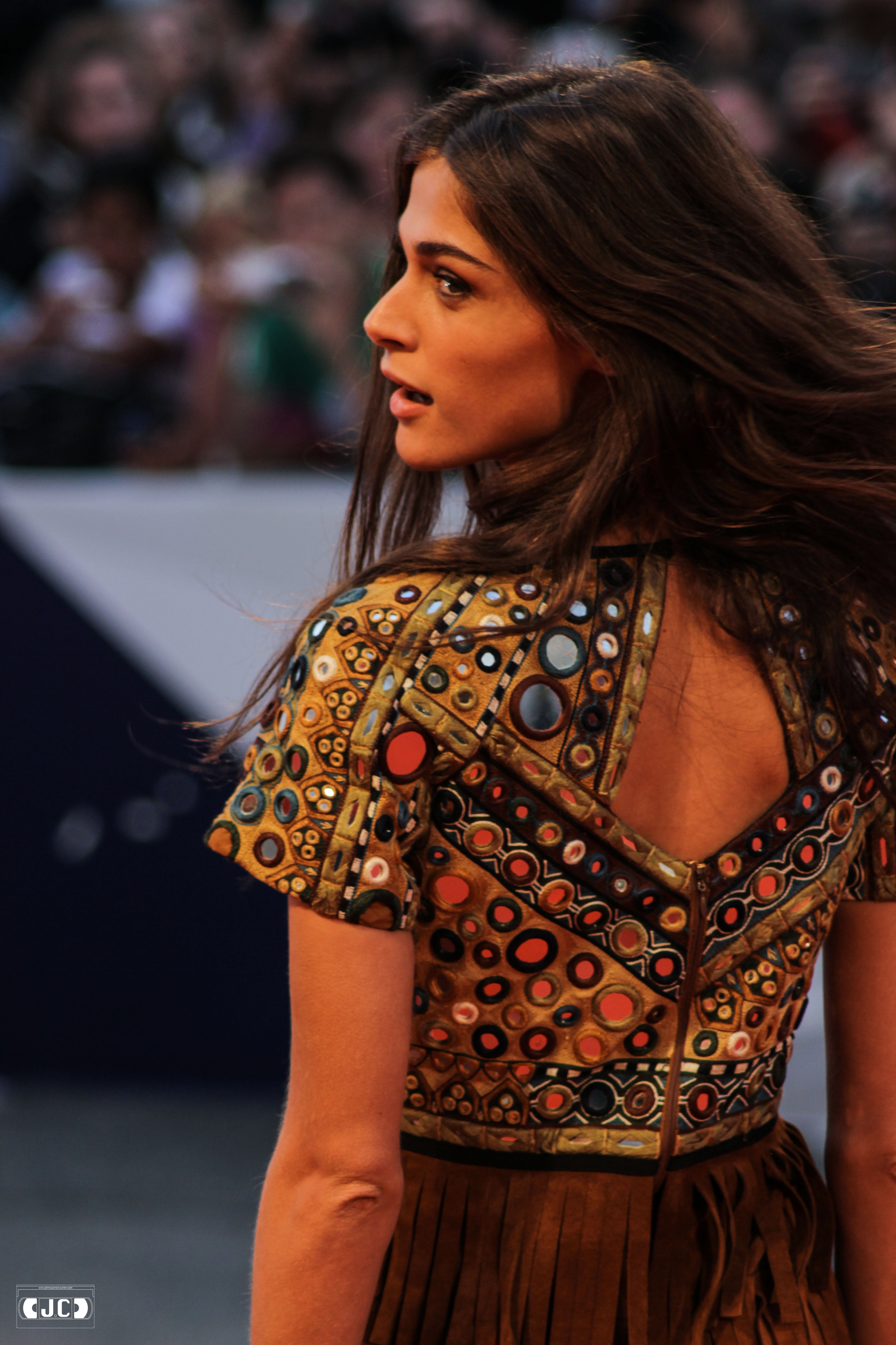 Elisa, la bellissima madrina della Mostra era come sempre divina in quest’abito con corpetto prezioso e gonna a frange. Questa volta, trattandosi di un red carpet nel tardo pomeriggio ha optato per un vestito Burberry Prosum alle caviglie invece che il solito lungo.