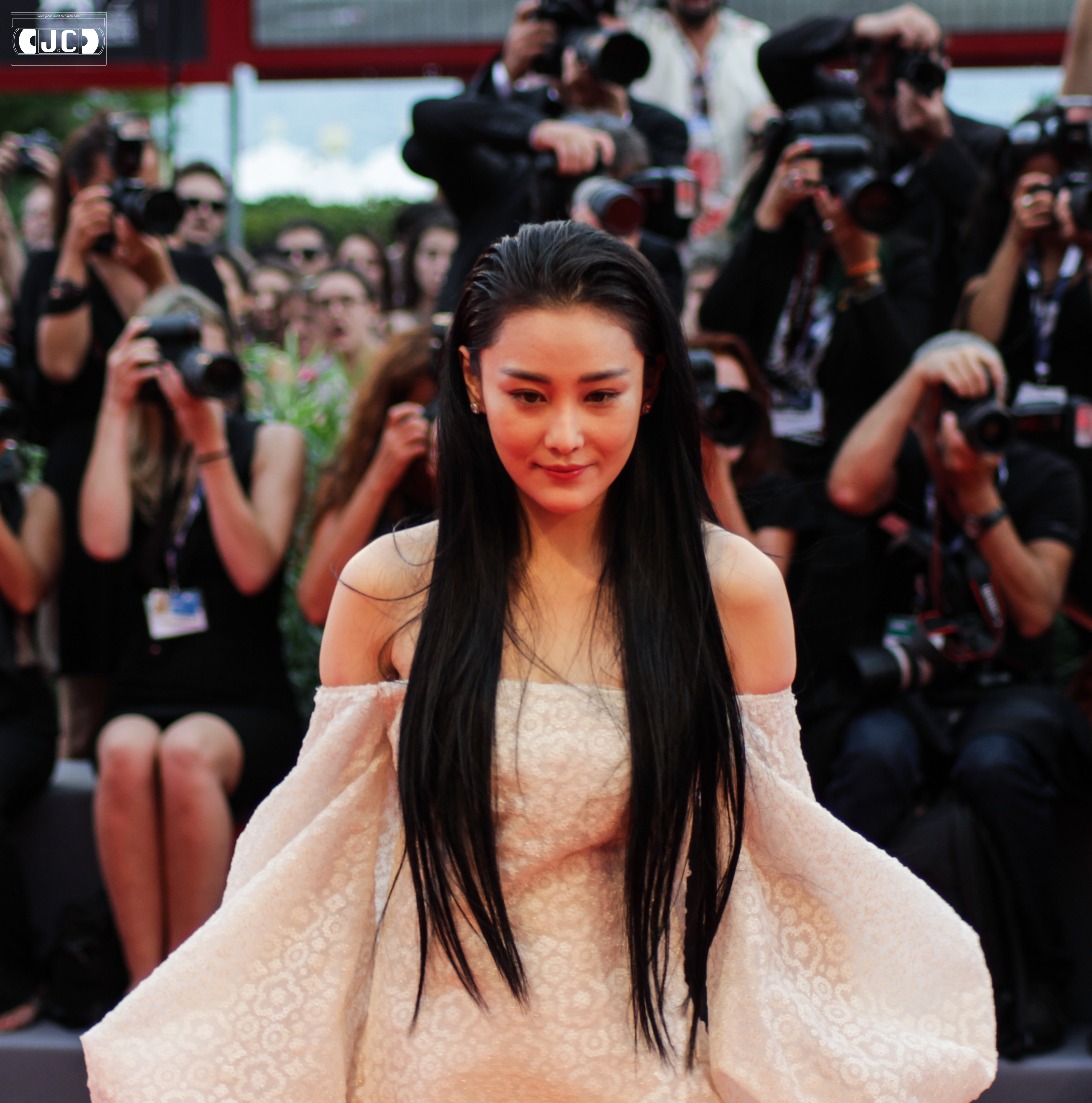 VIANN ZHANG: Molto affascinante l’attrice cinese che nel suo Paese è una delle più amate, e che a Venezia ha stupito con il suo look da bambola nel vestito Ashi Studio color crema con maniche a palloncino enormi.
