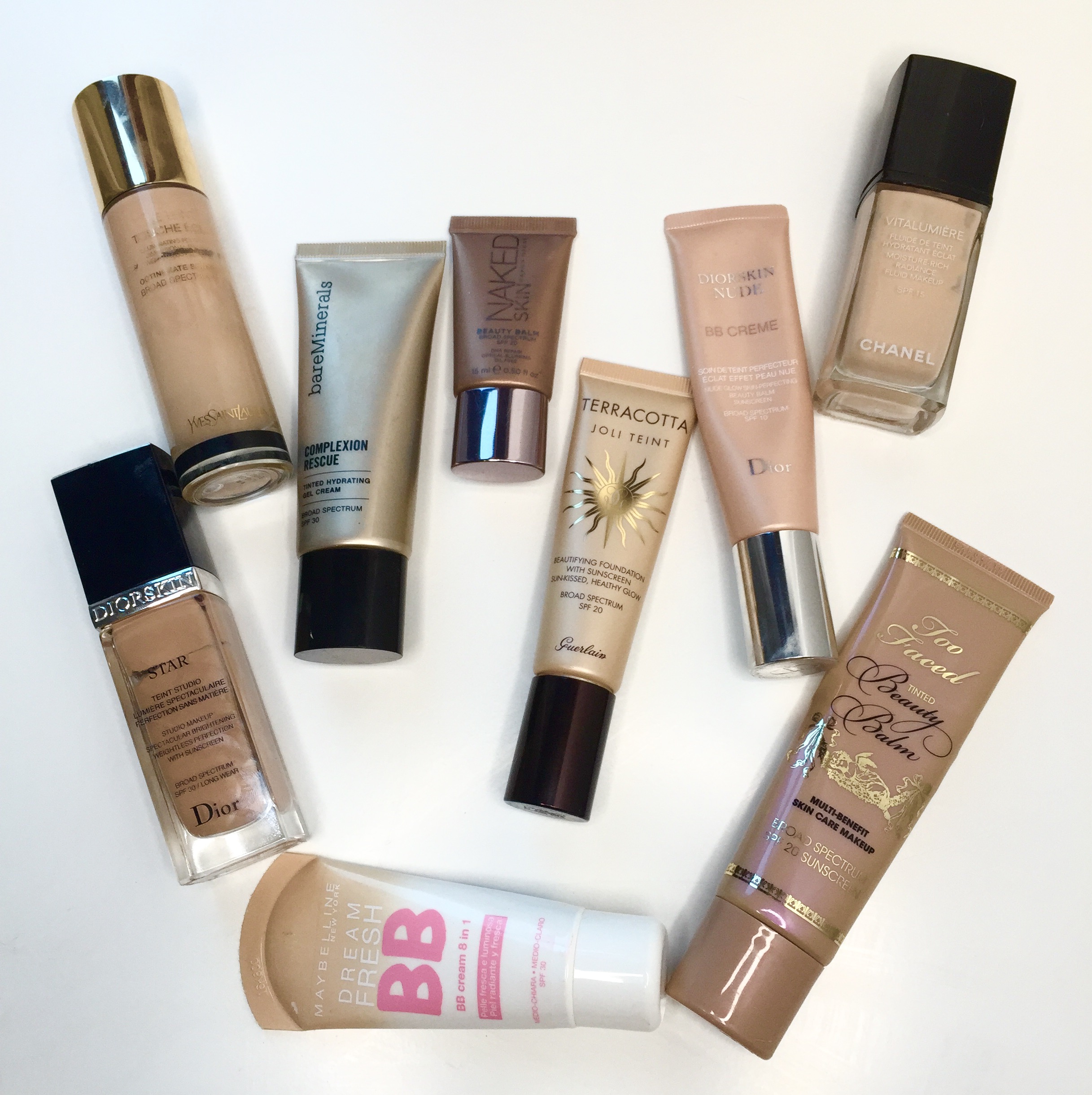 La maggior parte dei miei prodotti preferiti hanno al loro interno spf: fondotinta Dior Star, Touche Eclat di YSL, la bb cream della Bare Minerals, il nuovo fondotinta Terracotta di Guerlain, la bb crem Dior, la bb cream della Maybelline, Benefit, Too Faced e fondotinta di Chanel.