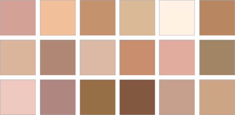 Come vedete dalla foto con i vari riquadri, i colori nude comprendono quindi delle tonalià più beige, marroncine, rosa, aranciate, albicocca, ma anche colori più caldi, più freddi oppure neutri.