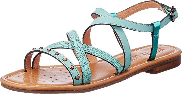 Se preferite puntare sul colore, sbizzarritevi con nuance tipicamente estive come il verde acqua dei sandali bassi Geox qui sotto: flat e confortevoli, presentano alcune fascette che si incrociano sul collo del piede e laccetto alla caviglia. Sono realizzati in vera pelle e resi più particolari dall’applicazione di borchiette.